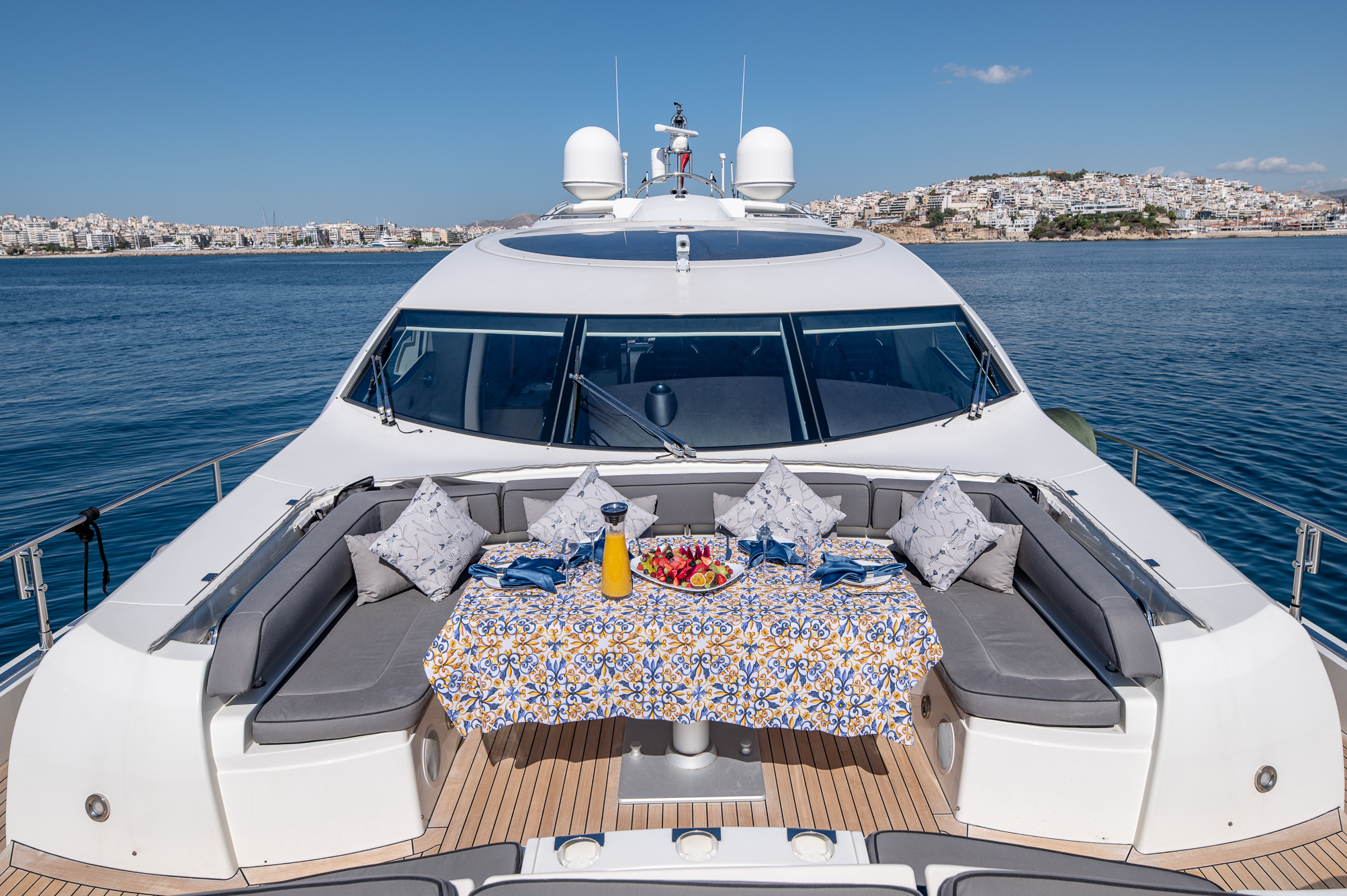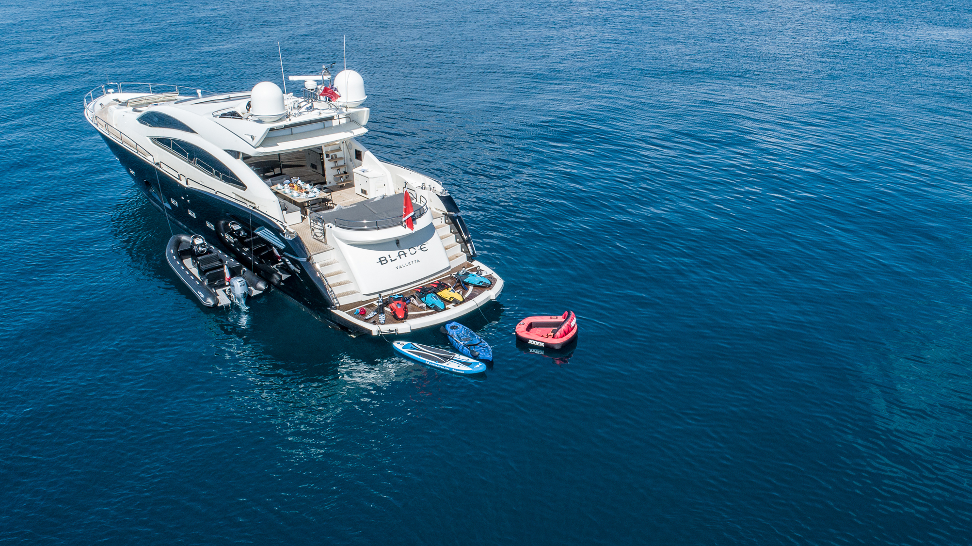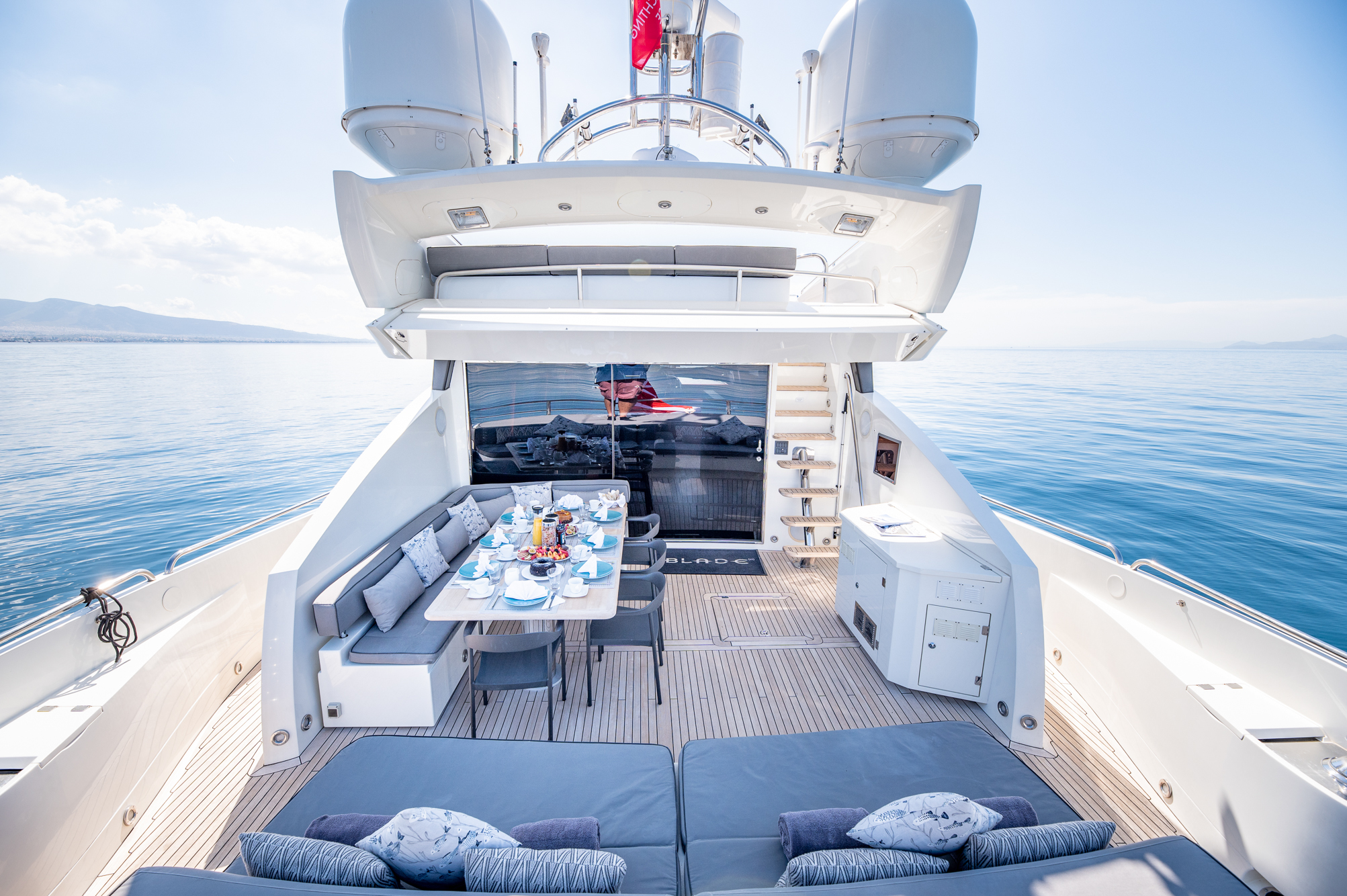 Blade 6 is a Sunseeker refit in 2022 and like no other, cutting through the water with her cruising speed of 30 knots and reaching up to a high speed of 33 knots. Her striking exterior design is the work of Don Shead, featuring a sleek, dark GRP planing hull powered by 2 MTU 2400 HP engines. M/Y Blade 6 accommodates up to 8 guests in 4 en-suite staterooms making her an excellent choice for families and groups of friends to enjoy a spectacular Mediterranean charter. Her best features include her hydraulic swimming platform, stabilizers at anchor and underway, beautiful teak decks throughout, a unique skylight, and large panoramic windows allowing plenty of light to radiate through to the interior open-plan salon and dining area.